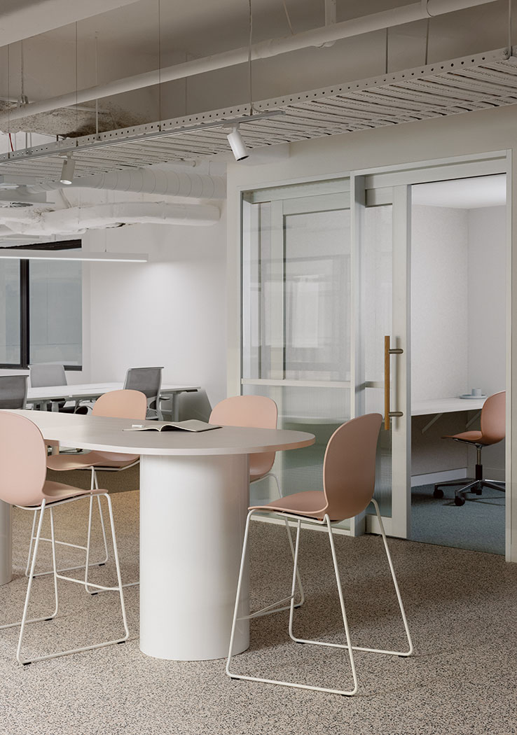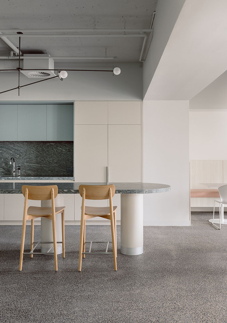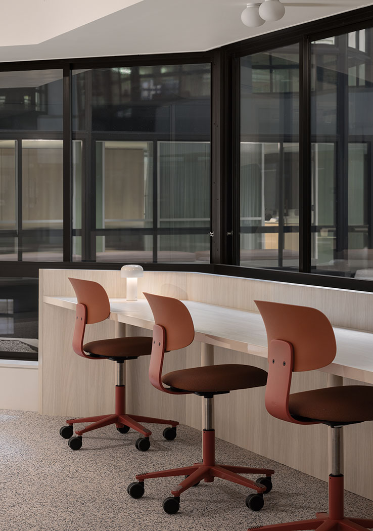 Honoring the heritage of the base building, the design delivers a contemporary and forward-thinking workplace environment. The Studio Tate team reconfigured the floor plan, focusing on the unique central atrium. The curation of a soft finishes’ palette, considered lighting and diverse working spaces, successfully elevates the experience for the staff and guests.