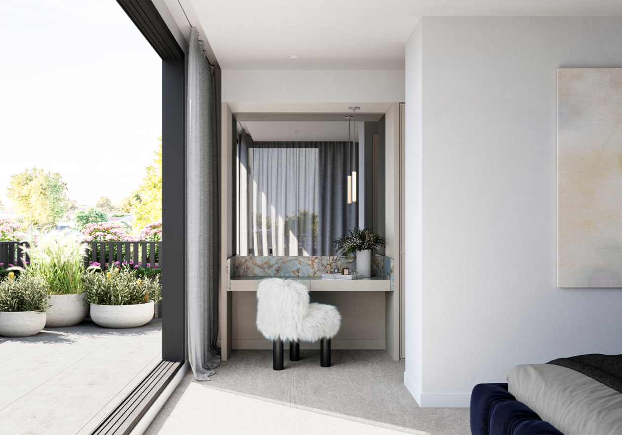 Design and amenity embrace tradition and craftsmanship in key elements that become ‘furniture pieces’; an island bench in the kitchen has the familiarity of a kitchen table and free-standing bathroom vanities feel comfortable yet contemporary. This same essence transcends the amenity with carefully considered details like double pantries and walk in wardrobes with perimeter beading.