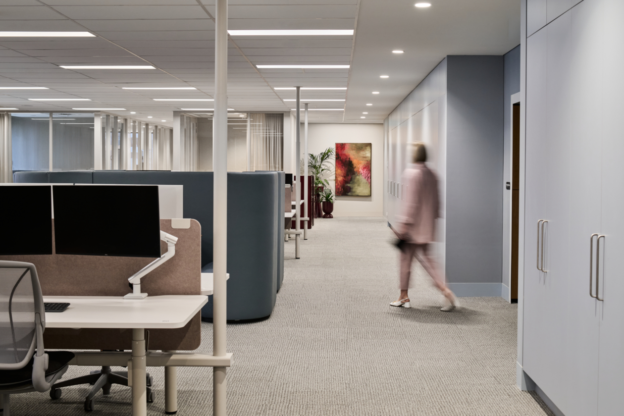 Studio Tate transformed Gordon Legal’s Melbourne office into a dynamic, human-centered workplace prioritising growth, culture, and staff wellbeing. The firm, founded by Peter Gordon, focuses on compensation law and representing everyday people, and wanted a flexible, inclusive environment for collaboration and focus.