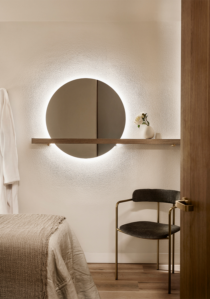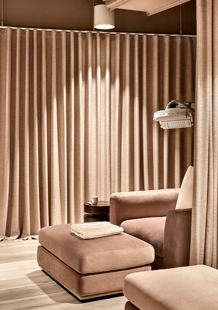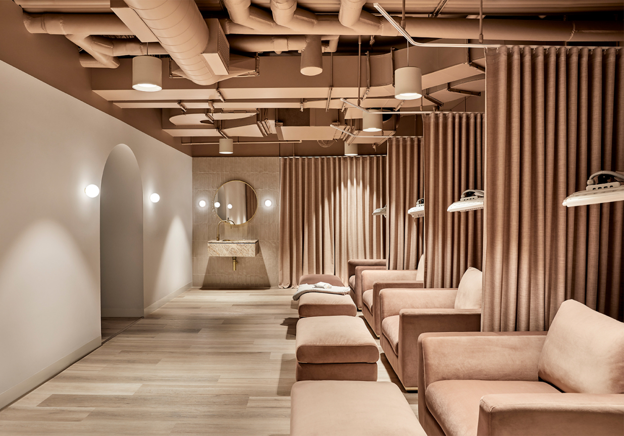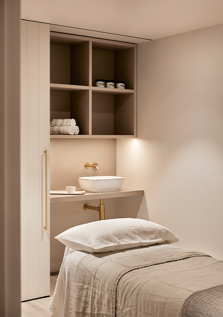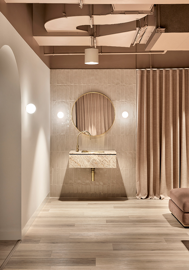 Each space has its own distinct identity as a reflection of their various functions, whilst being united by a sense of calm indulgence. The finishes palette is gentle and the spaces are humble in scale. The overall aesthetic is designed to reflect the transformative process of refinement; from rough texture through to polished finish, representing a realisation of the wellness experience.