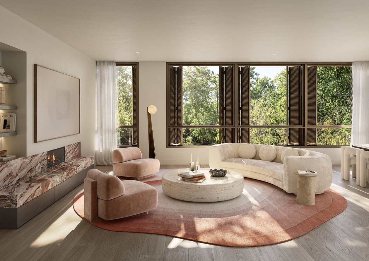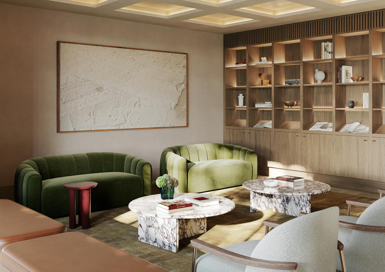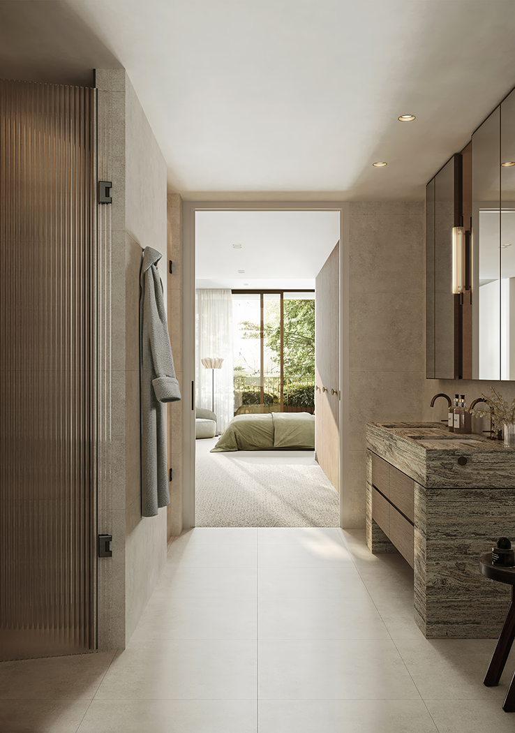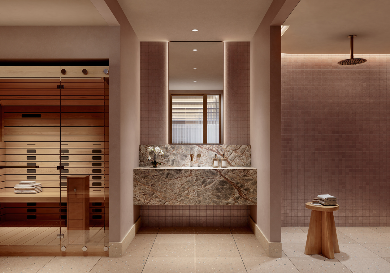 Studio Tate’s interior design for Maleela Rise blends Modernist principles with a restrained and contemporary palette to craft exceptional private residences and shared spaces. Richly detailed interiors frame community-focused amenities including the Club Lounge, Sports Lounge, Bar and Garden Lounge, while the Wellness Centre houses a gym, yoga studio, and infrared saunas.
