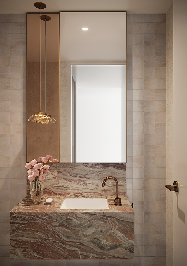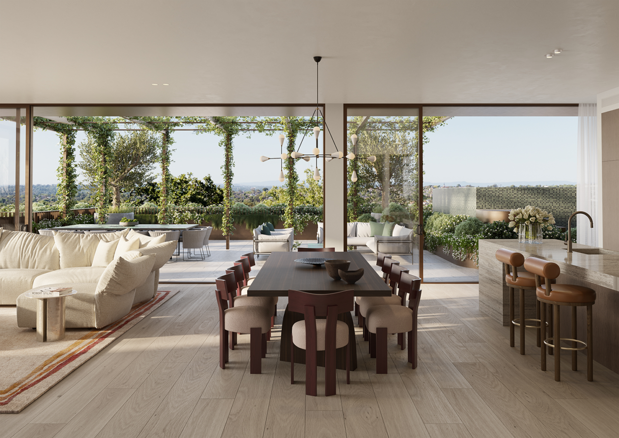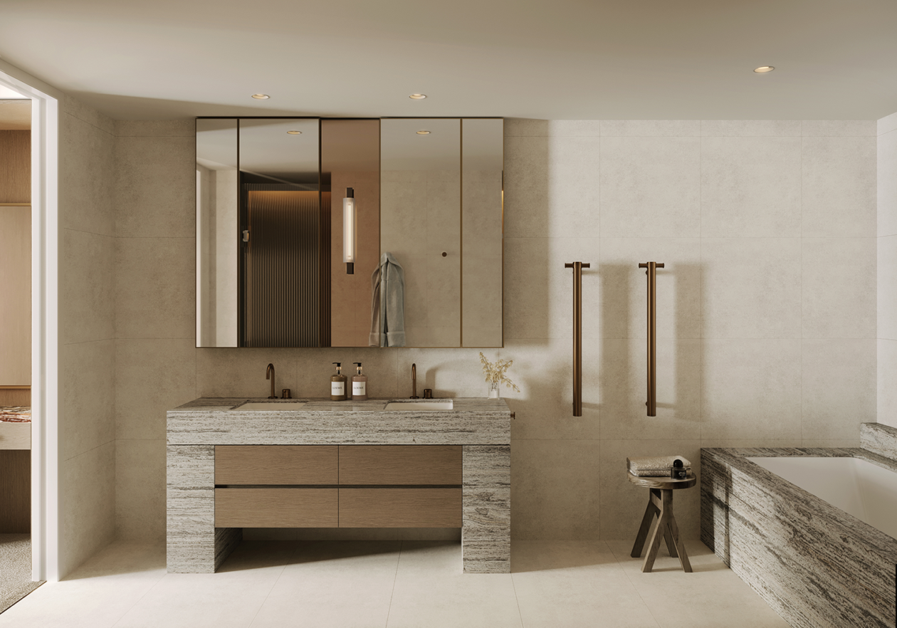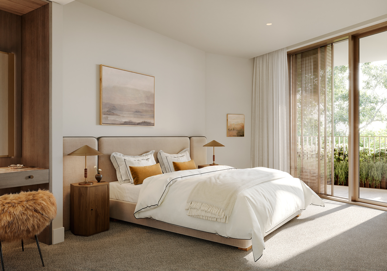 Studio Tate’s interior design for Maleela Rise blends Modernist principles with a restrained and contemporary palette to craft exceptional private residences and shared spaces. Richly detailed interiors frame community-focused amenities including the Club Lounge, Sports Lounge, Bar and Garden Lounge, while the Wellness Centre houses a gym, yoga studio, and infrared saunas.