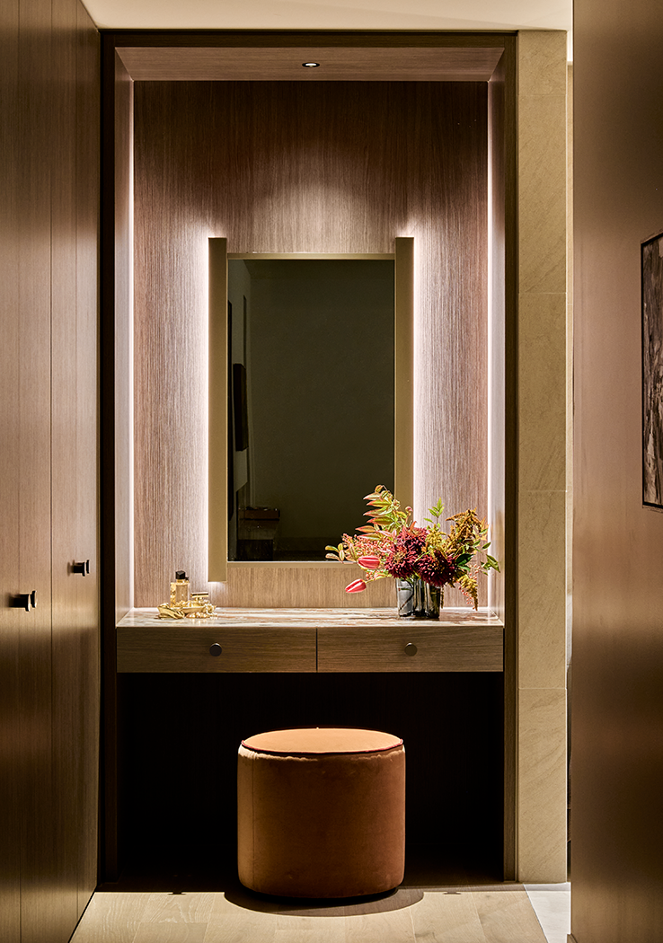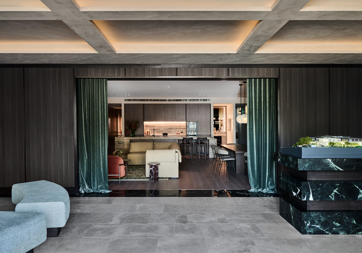 The Maleela Rise Display Suite offers a glimpse into the project’s refined sensibility, showcasing the quality, material richness, and considered detailing that define its residences and shared spaces. Through layered textures, sculptural stone elements, and finely crafted joinery, the interior design expresses a vision for daily living where design nurtures wellbeing and deepens our connection to nature and community.