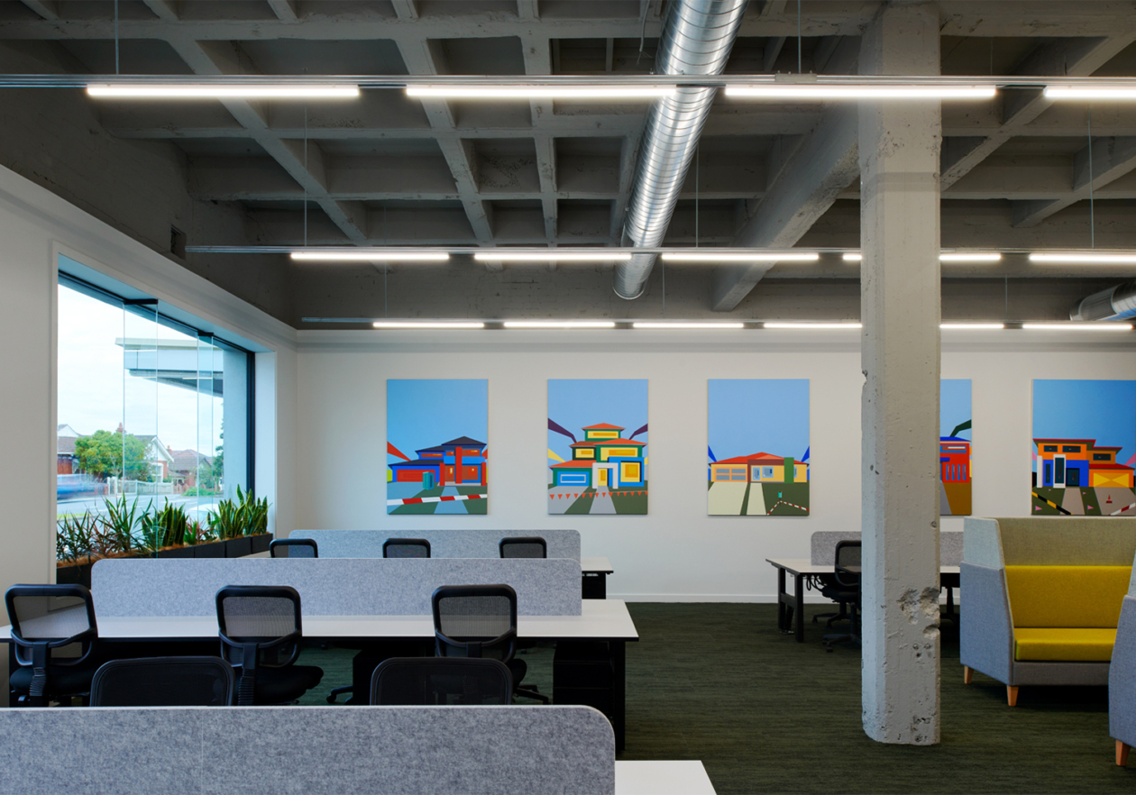 Studio Tate was engaged by Our Community Group – a company offering information technology support, training, and tools to not for profit, social enterprise and government organisations – to reimagine and transform an existing space into what would become the company’s colourful new co-working office.