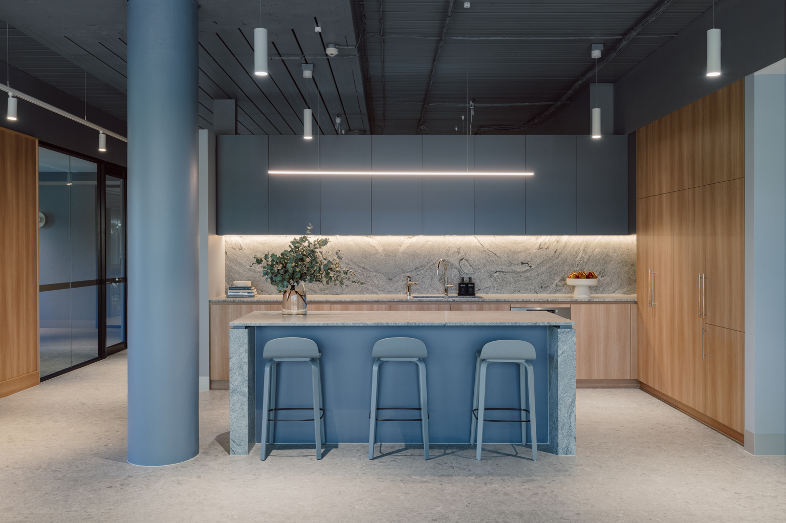 Studio Tate were engaged to refresh two of South Haven’s existing work floors. Each space was given a new identity yet still maintained a sense of cohesiveness. Studio Tate envisioned Level 2 with a tonal blue palette that flows throughout the workspace.