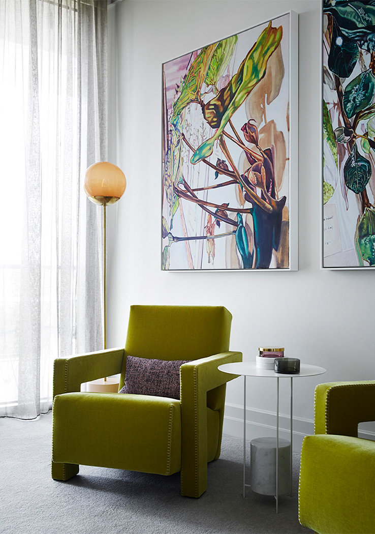Loose furniture and artworks were selected for each room, accentuating the colour palettes, materials and textures of each space.