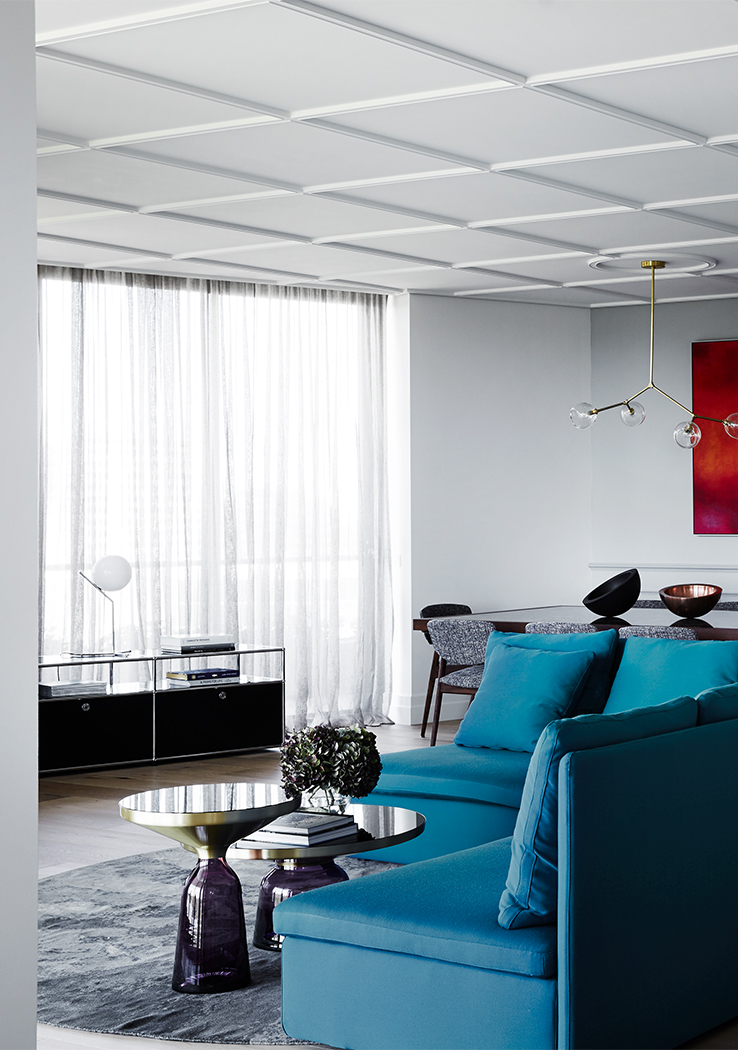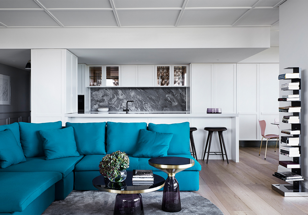 Studio Tate completed a comprehensive renovation of a penthouse apartment, maximising its expansive views of the Shrine of Remembrance and the Botanic Gardens. Looking for a refreshed, opulent feel, the idea of ‘LA glamour’ was introduced through a sophisticated and bold concept using feature materials to evoke an understated luxury with a vintage Hollywood vibe.