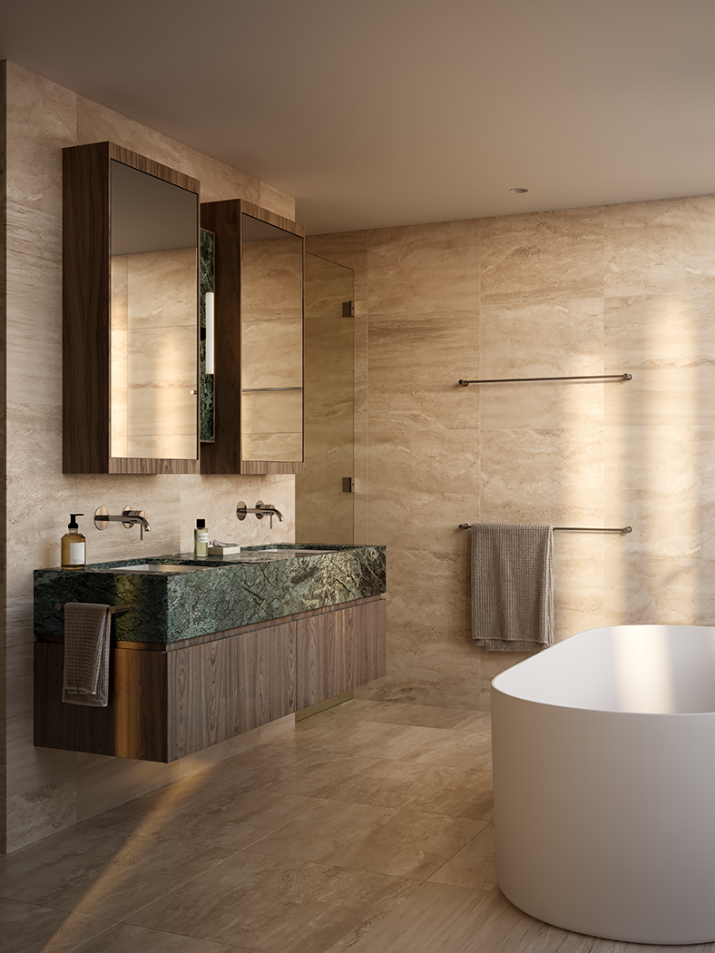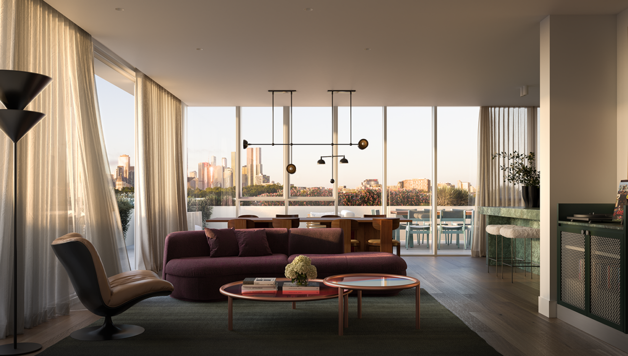 Inspired by the site’s previous life as the Regent Theatre, the 65 apartments translate a narrative of ‘cinematic glamour’ and are offered within either an ‘Arthouse’ or ‘Classic’ scheme. The roof terrace provides generous shared amenity, taking advantage of expansive city views whilst the lobby provides full concierge services to residents.